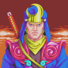 达尔西姆的场景,象神庙宇。最初的设计中他裹着头巾,后来成为光头,到了《街头霸王V》头巾再次回归