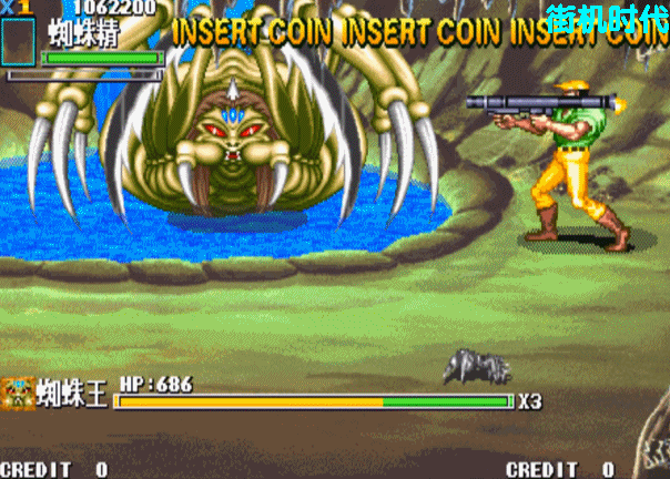 我好不容易熬到这家伙被打死了,哪知道他死了之后还继续投币,出来又是带着火炮。看他那表情就怕我俩揍他,其实害怕的是我俩啊!