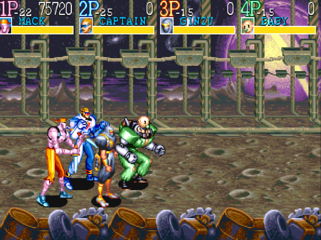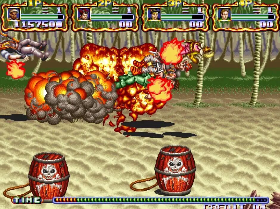 CAPCOM游戏中似乎都有互相伤害的设定,《名将》扔人出去可以砸到自己人、《惩罚者》可以阻止队友走位、《快打旋风》《恐龙快打》和《三国志》可以直接攻击队友。