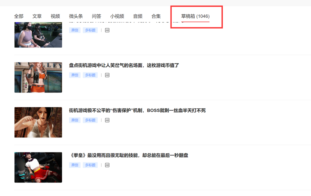 这里我直接截图,大家可以看看,草稿箱存了1046篇,这些都是还没有发表的