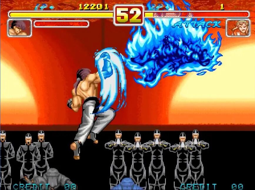 《拳皇》这边升龙追加攻击的人物比较多,伊格尼斯、K'都玩得炉火纯青,玛丽的垂直之箭还能将对手抓住抓下来。