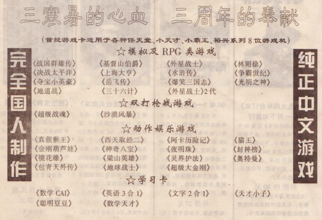 什么先锋卡通你不知道?那《Game集中营》《电子游戏软件》你总该知道吧!他们的前身就是先锋卡通。另外,《吞食天地2:诸葛孔明传》《重装机兵》也是他们汉化的。