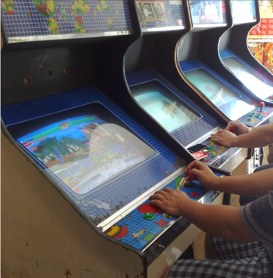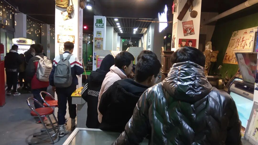 游戏厅大家都不讲究,为了“抢地盘”,甚至有的人从一开始就压着别人的肘,一直到结束。