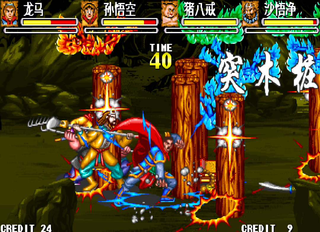 《西游释厄传》四个人一起投币按开始,那绝对是1P最先进入画面。这样的话就可以优先选择孙悟空。后面的玩家根本没有任何思考的时间,进入之后,慢了一步就只能选择沙悟净或者猪八戒