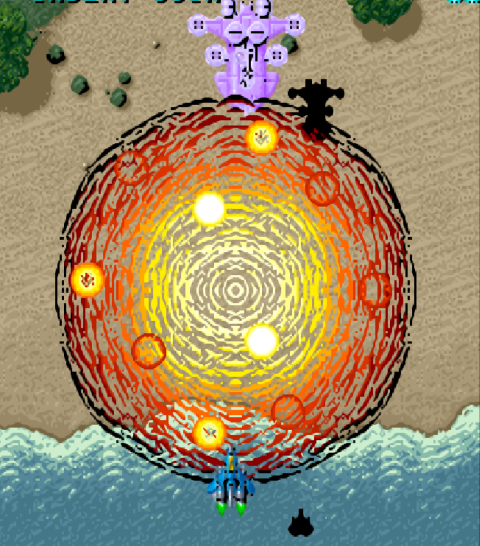 飞行类射击游戏,要是两家飞机重叠的话,子弹飞来2P大概率会被打爆。