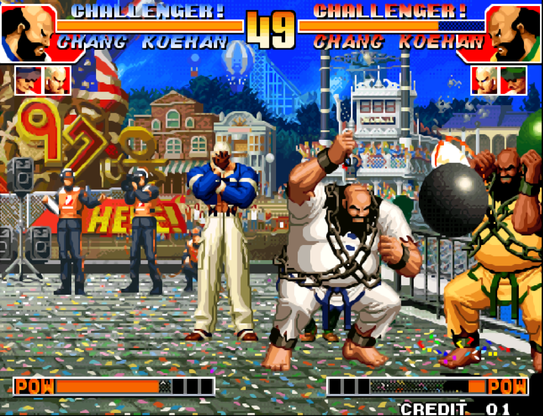 在街机游戏厅中,1P占有绝对优势。《拳皇》1P的陈国汉下B接零点转球,几乎可以打出惊人的无破绽连击,但是2P存在一定的硬直。但是换一个人物,像是翻盘女王玛丽,2P就要比1P更有优势。