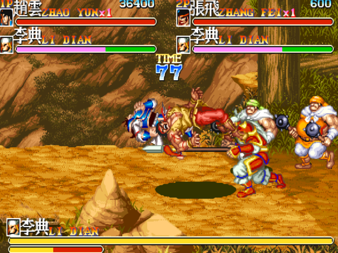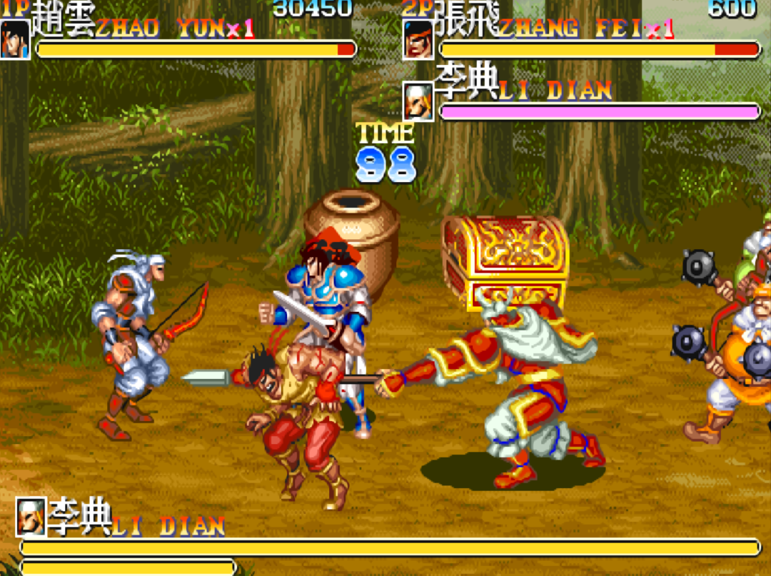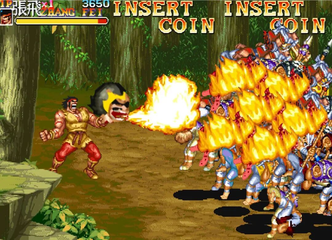 别看如今我们在模拟器上面玩起来比较简单,游戏厅那会儿的《三国志》是拼装货。利用《快打旋风》《吞食天地》《吞食天地2》三款游戏拼出来的,难度直接开到了最大。