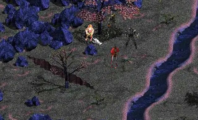 到了《暗黑破坏神2》时期,在接受了拯救迪卡凯恩的任务之后,我们通过黑色荒地拿到的卷轴,以及石块旷野的传送,终于来到了被摧毁之后的崔斯特瑞姆。