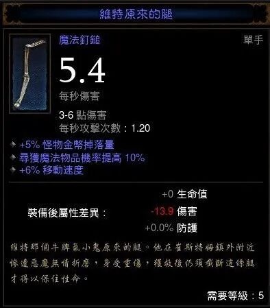 维特之脚是《暗黑破坏神2》中比较特殊的道具之一,在初期的时候甚至还可以作为武器。