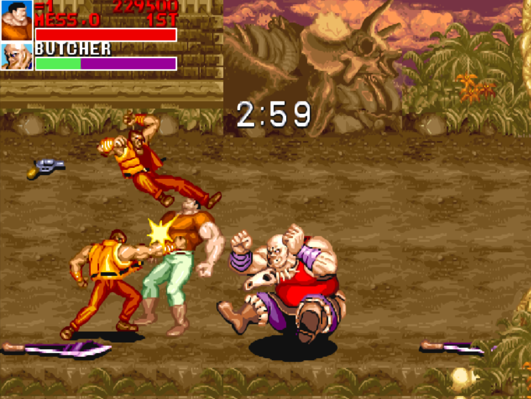 《恐龙快打》是当年比较火爆的游戏,同时也是跨度最大,摆放时间最长的游戏之一。