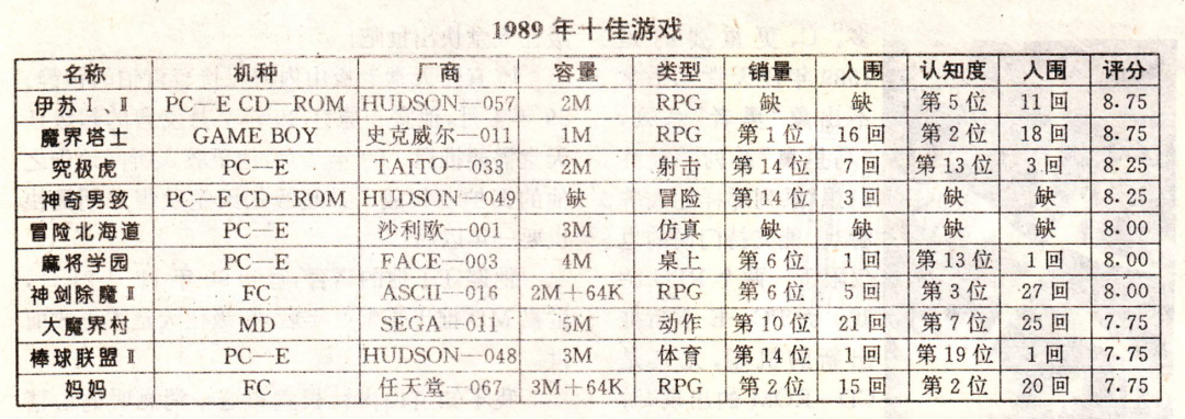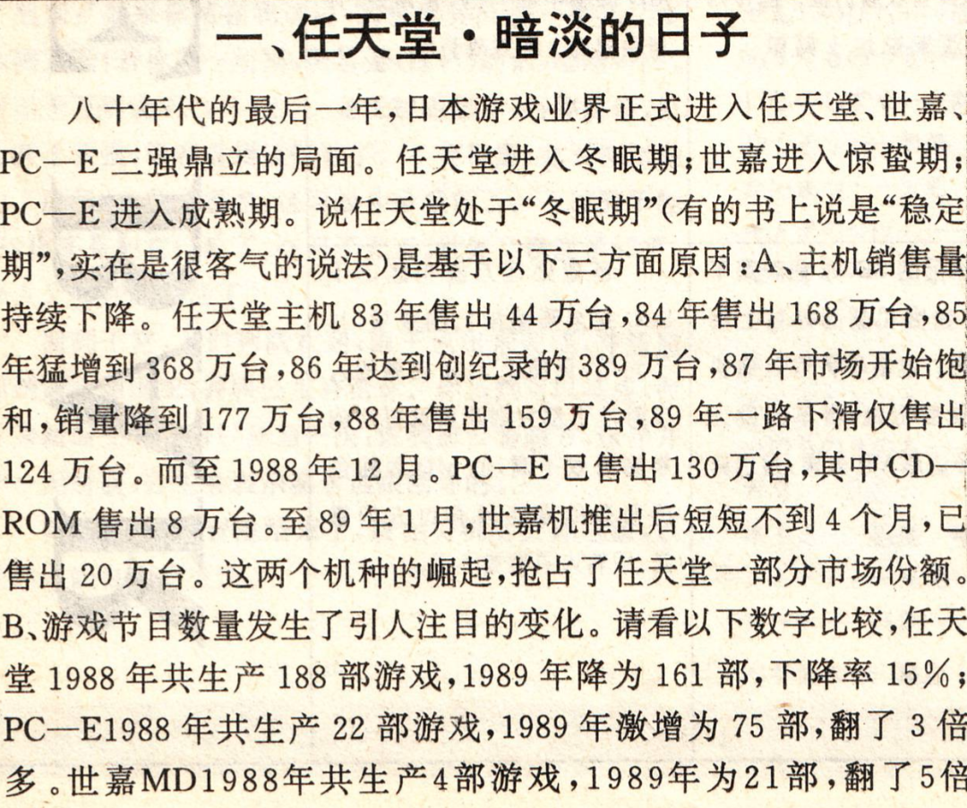 八十年代末期,任天堂、世嘉和PCE进入三足鼎立的局面。电软对三家游戏商的评价不同,看得出来此时看好的是世嘉的MD、NEC的PCE。
