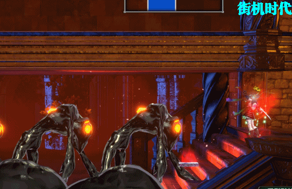 但是,很多时候这个屏障都是无效的。BOSS只需要一个飞刀就能破解。受伤硬直一直都是《恶魔城》系列最大的弊病啊!不过在很多版本中可以通过装备抵消。