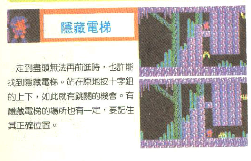 游戏中的地图相对比较复杂,要是你之前已经玩过了《人间兵器》《银河战士》和《七宝奇谋》的话,那么这款游戏的迷宫还是可以上手的。在没有攻略的情况下,需要测试很多次才能走出去。