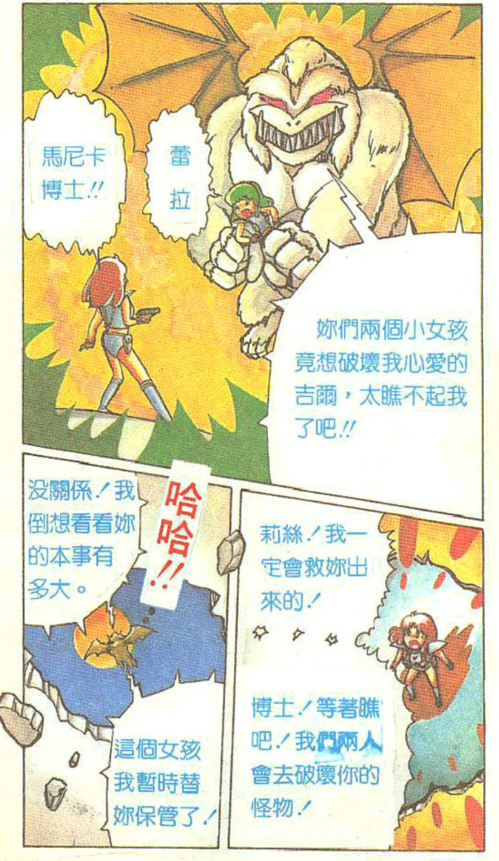 本来一切都很顺利,但是在关键时候,马尼卡控制的大猩猩突然出现,抓走了莉丝。蕾拉必须前往邪恶城堡救出了莉丝,两人齐心协力一起打败了马尼卡博士制造出来的机器人和怪物。