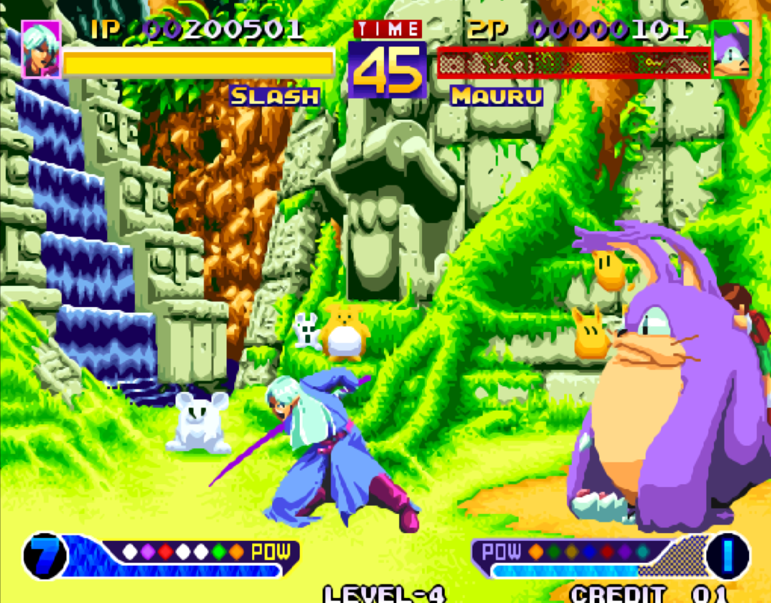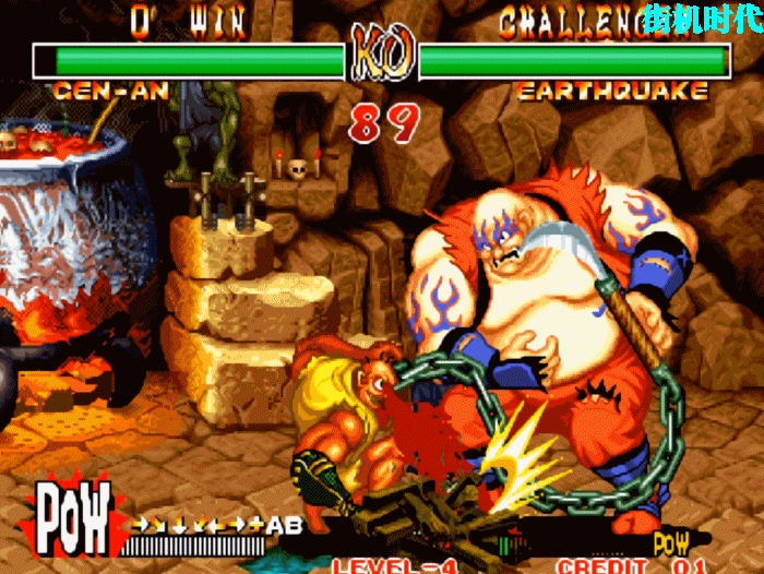 如果是最终BOSS魔界大帝的话,那就比较无耻了。他的超必杀技几乎没有前摇,攻击范围比较宽,几乎是避无可避。