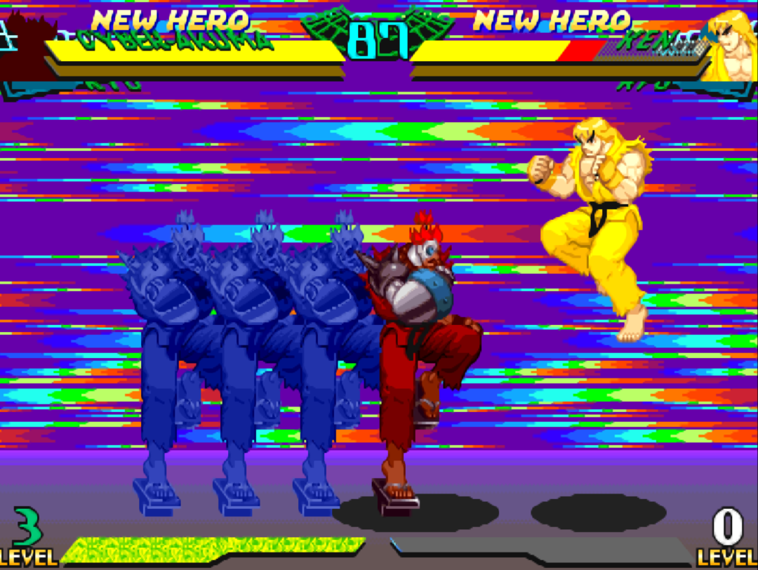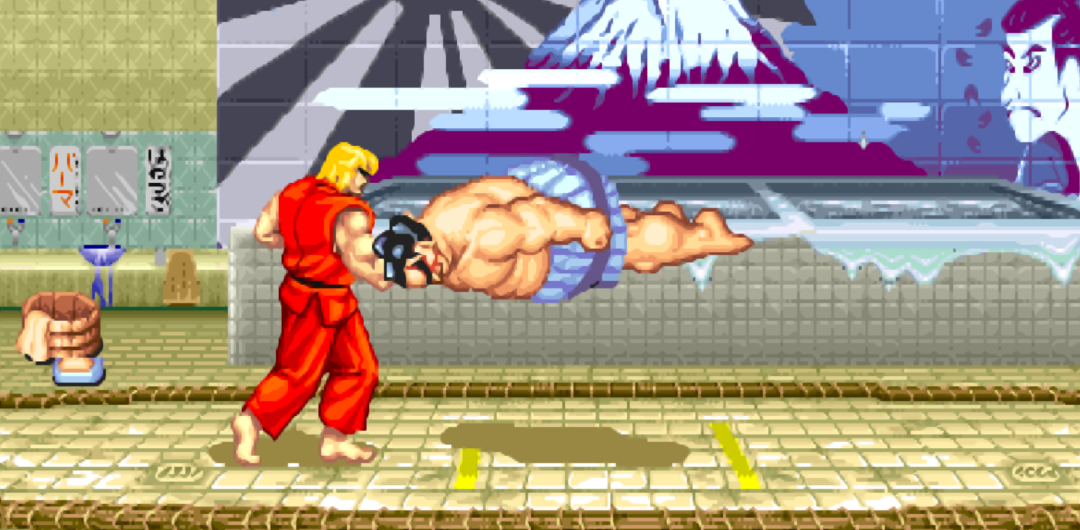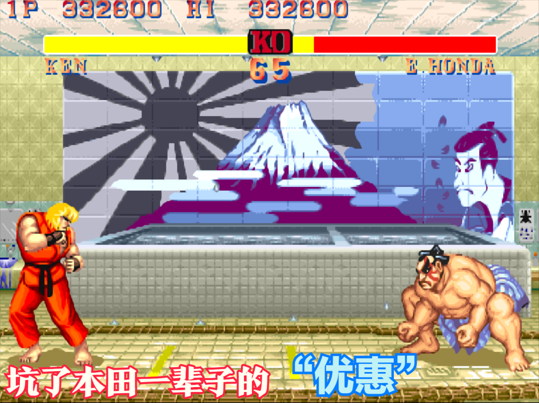 而我最欣赏的,自然就是《街头霸王2》的本田。每次残血的时候都喜欢释放“有鬼”,而这一招就是给我们练手的,根本无法命中任何人,随随便便一个升龙拳就给破解了。