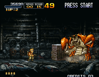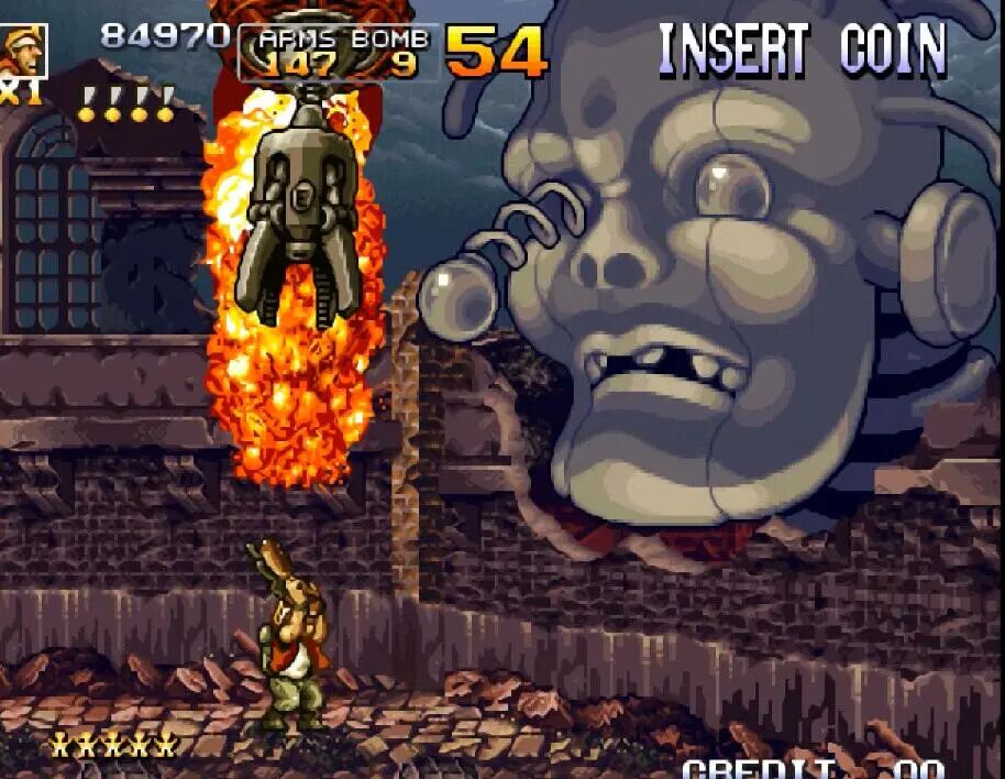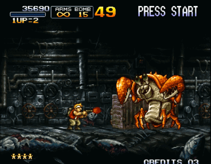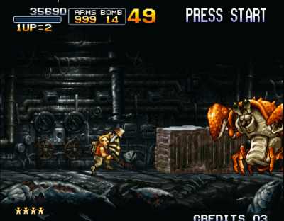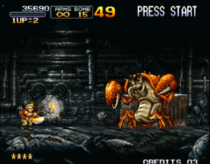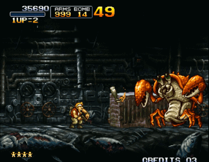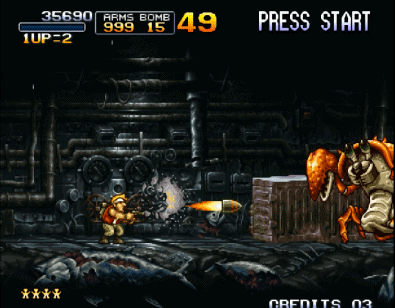 如果要说街机上玩家们最熟悉的射击游戏,那绝对是《合金弹头》。该系列从初代开始就沿用了《魂斗罗》中的子弹系统,不过初代只有H、S、F、R几种子弹,相对比较单调。而在后续的作品中陆续加入了L、D、C、I、G、Z、T....这些比较牛叉的子弹,让合金弹头系列的玩家更加丰富。
