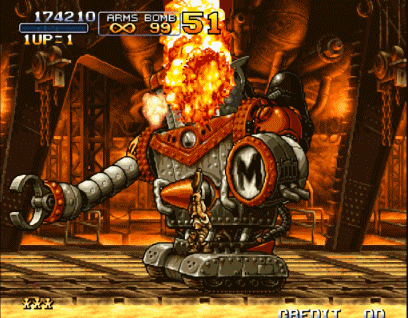 小编再试试《合金弹头》中的三关BOSS,这个BOSS是出了名的皮厚。