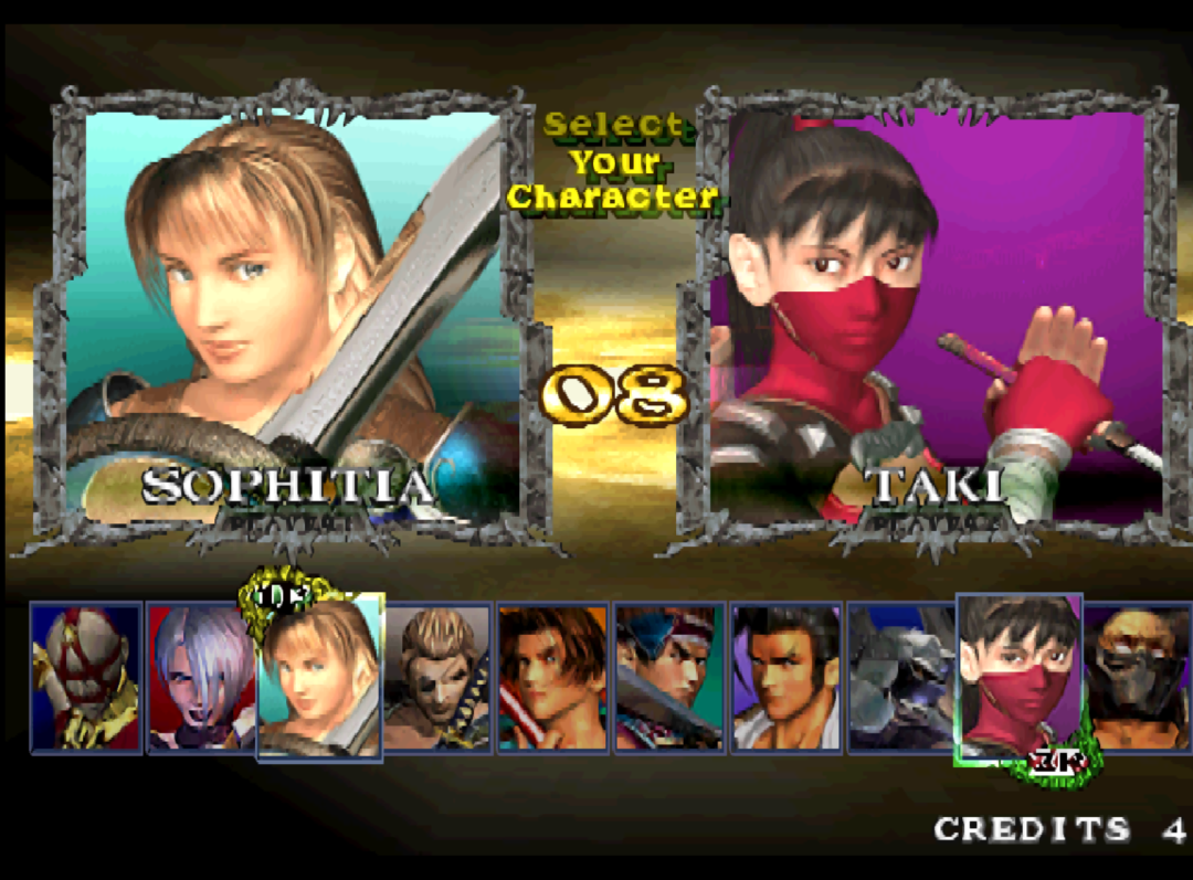 《魂之利刃》后期更名为《灵魂能力》,这应该是游戏厅最具代表意义的冷兵器格斗游戏了吧!所有人物全都拥有专属的武器,就连最终BOSS都是一把武器幻化而成的。