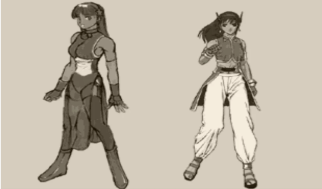 《拳皇12》雅典娜和八神庵的最初造型。看来SNK此时也想为格斗家们更换更加时尚的造型。