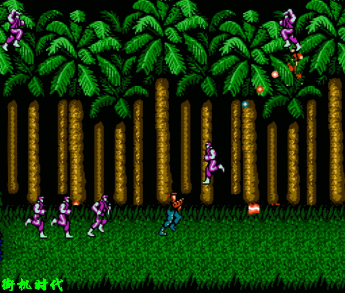 在街机版中《魂斗罗1》的L弹就比较好用了,这才是激光应该有的样子嘛!