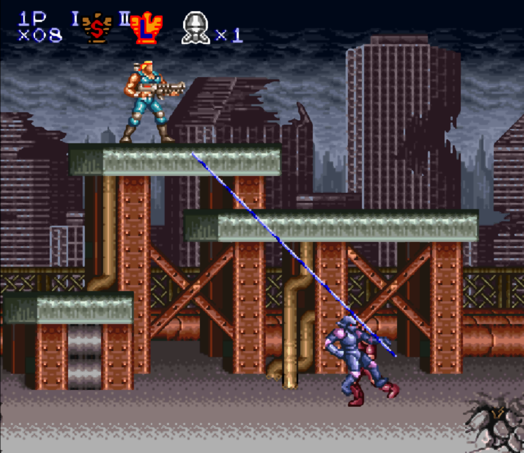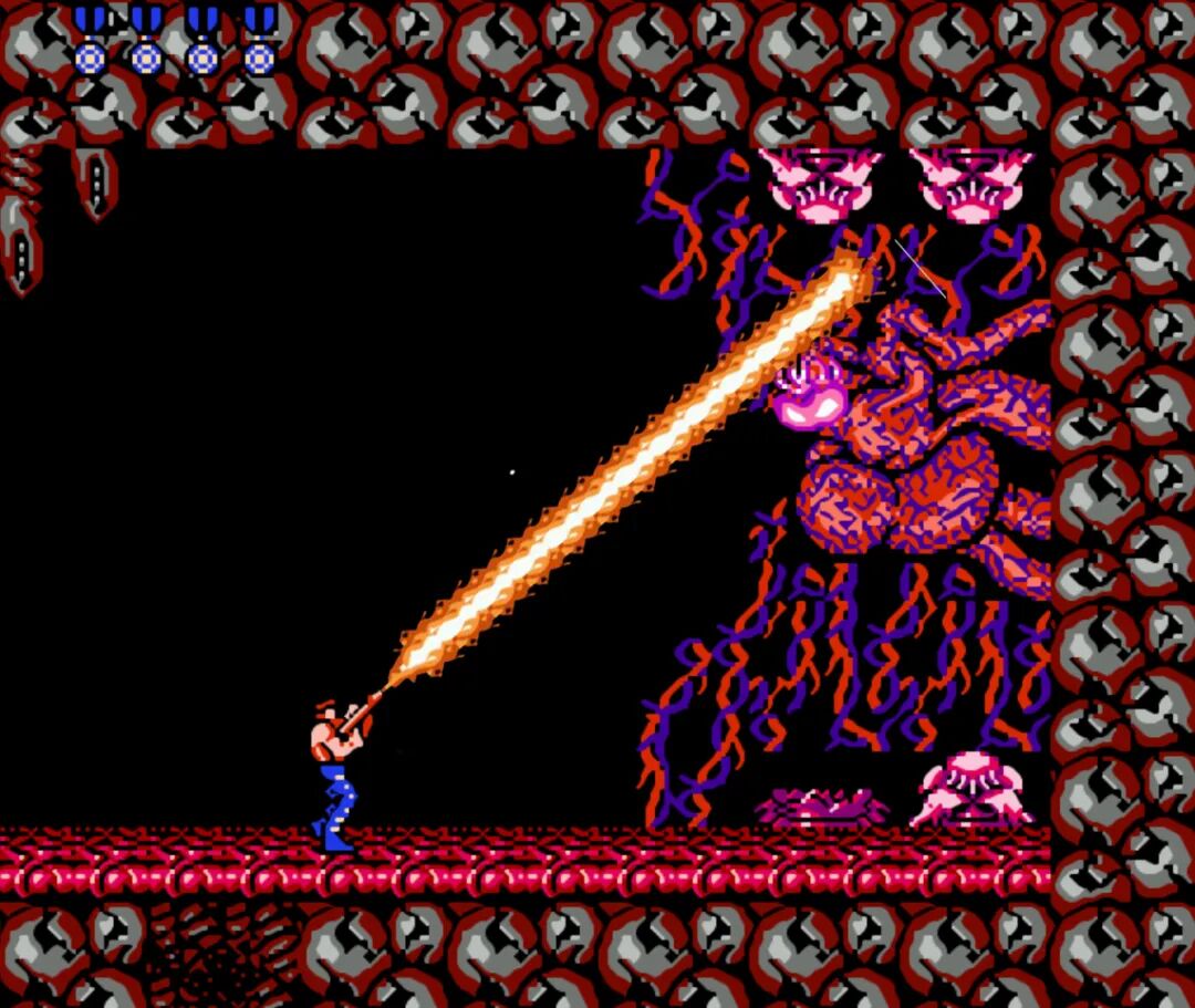 《魂斗罗4》时期,激光终于成为了游戏中最强大的武器。拥有穿透的效果,而且射速极快。