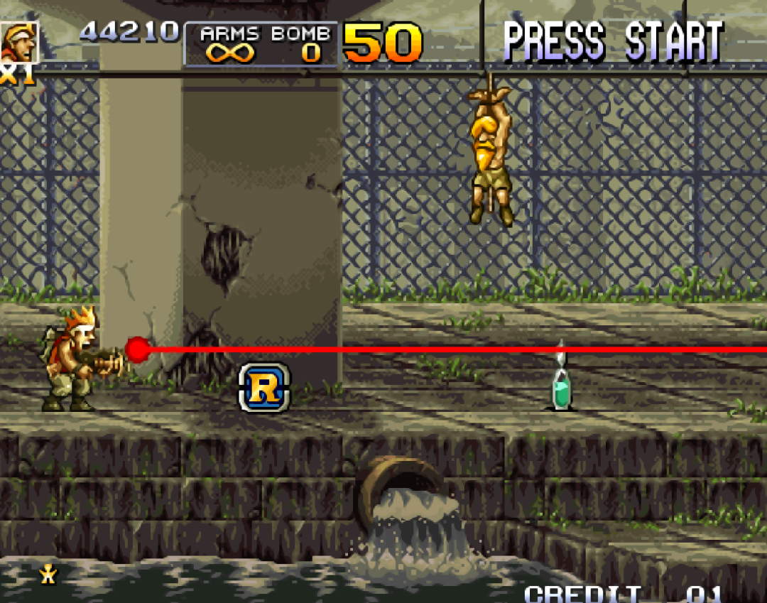 和《魂斗罗》中的不同,L弹在《合金弹头》非常受欢迎。不仅仅是威力大,而且还能射通屏。最初的短板是无法斜向攻击,而这也在后期的版本中得到了修正。