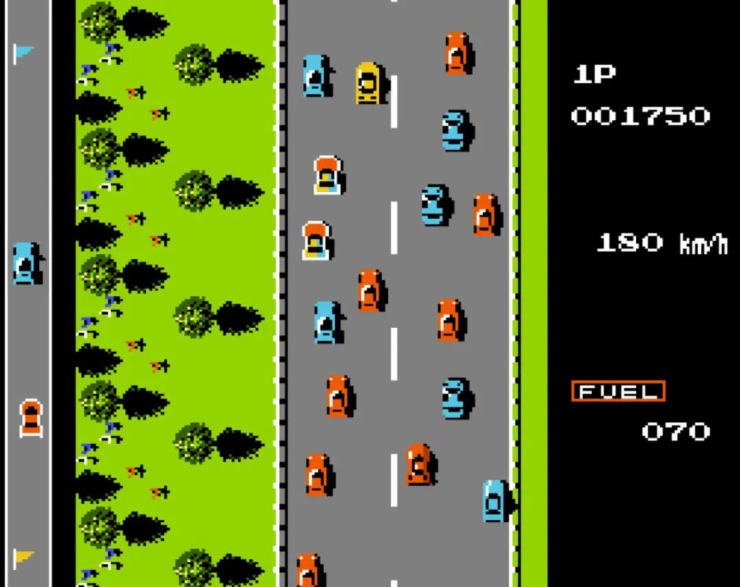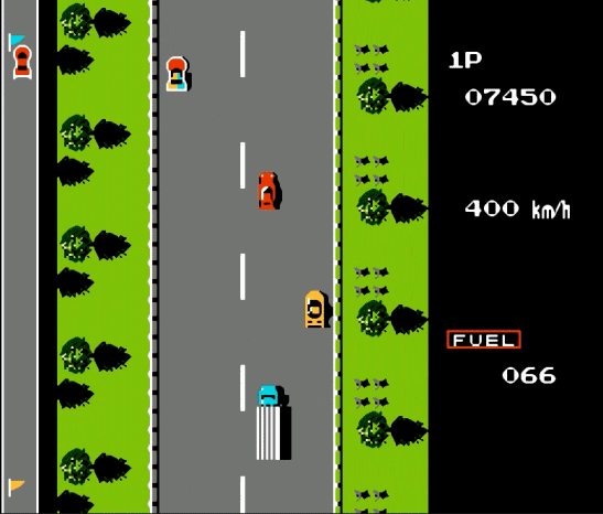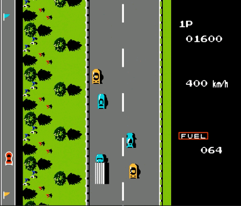 当年一直没有搞清楚游戏的玩法,老老实实飙车,尽量不去撞任何车子,然后顺利过关。在被撞,或者压油坑之后毫无办法,眼睁睁地看着车辆撞爆,然后原地重新开始。