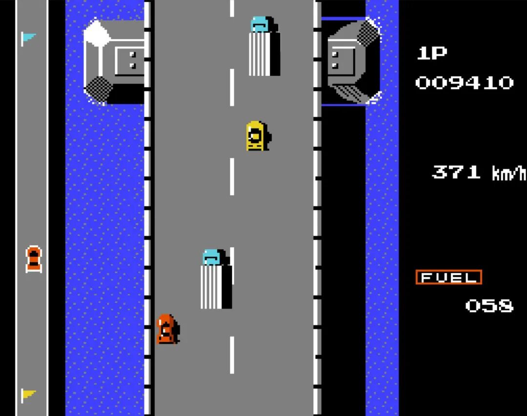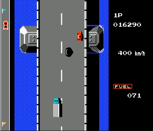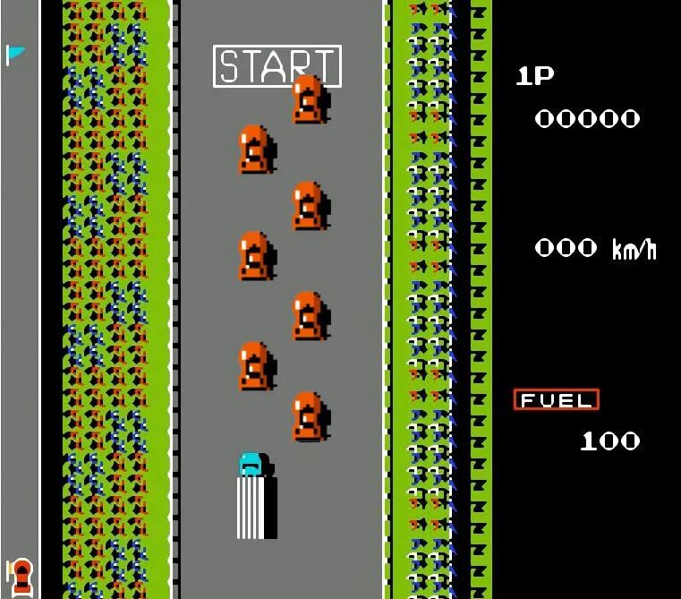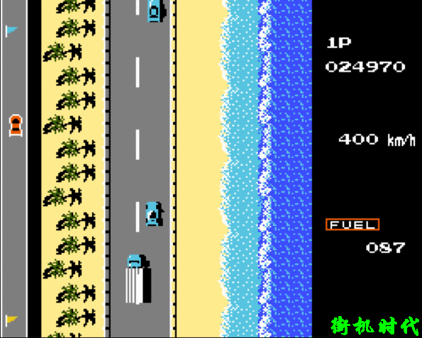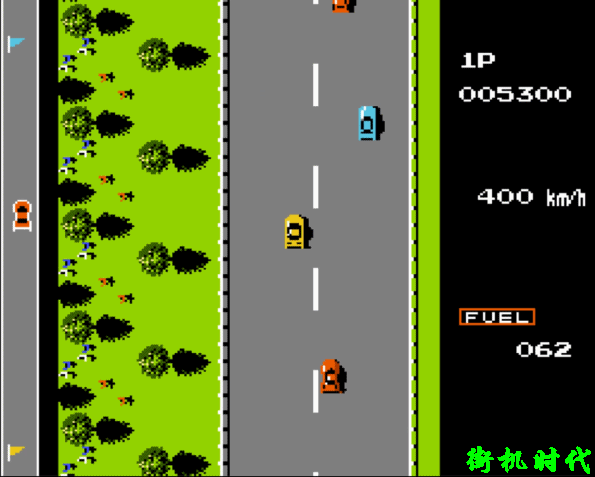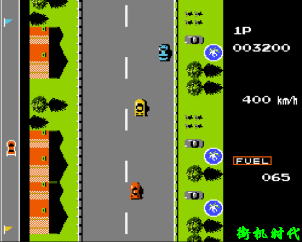 那时候《火箭车》是玩得比较多的游戏之一,并不是因为游戏很好玩,而是在很多盗版合集卡带中都有这款游戏。玩家只需要上手玩一次,就会爱上这款游戏。