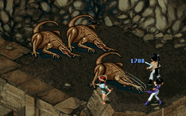 十里坡小妖,刚刚出场就会初级法术,李逍遥只有一个人,不用奇招很难打得过。基本上遇到了它们就是死,加血都加不赢。