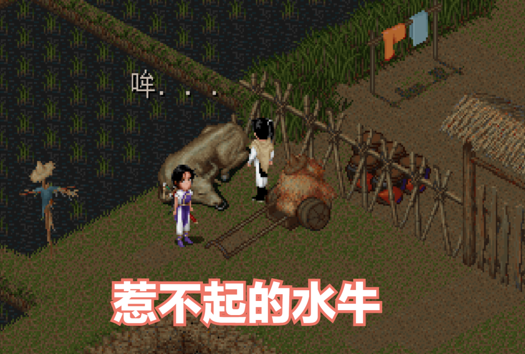水牛,在游戏原版中有那么一只水牛在秧田边上睡觉。我们只要触碰一下就会发出“哞”的声音。