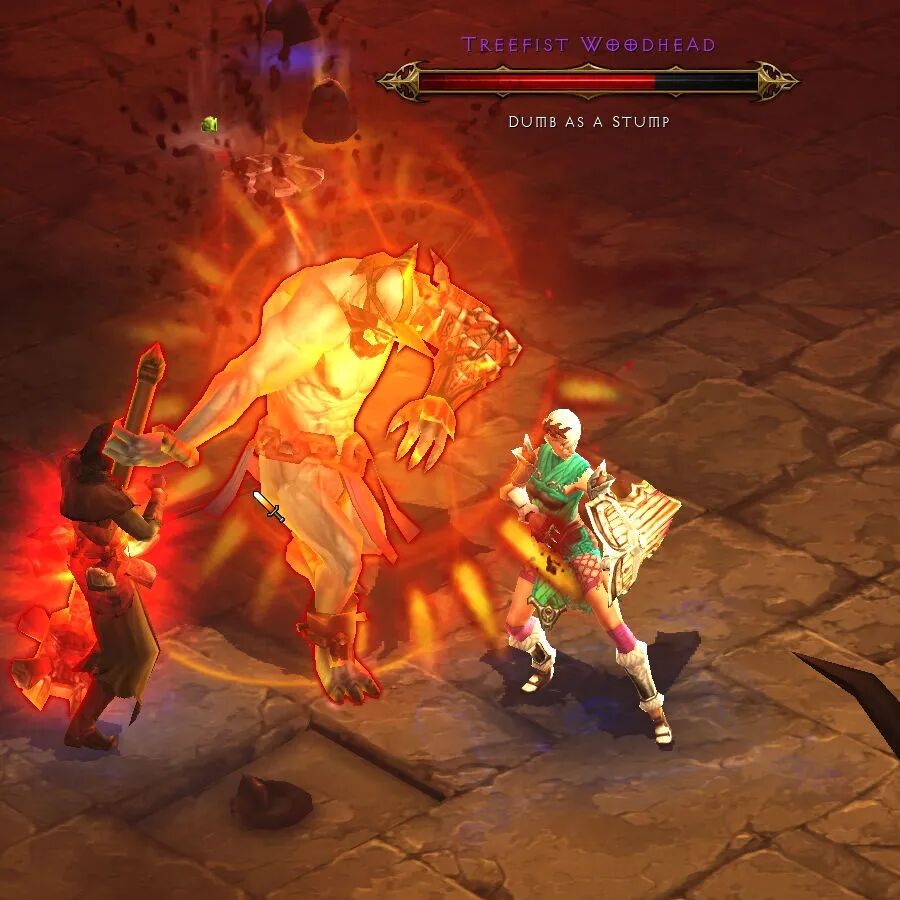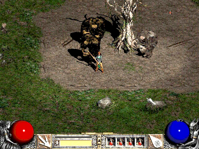 是不是感觉稍微有点不同?说实话,《暗黑2》的分辨率虽然很低,但是怪物我们还是看得很清楚的,但是在《暗黑3》中反而没有那种感觉了。昔日毛茸茸的树头木拳,连毛都不见了,一点感觉都没有。