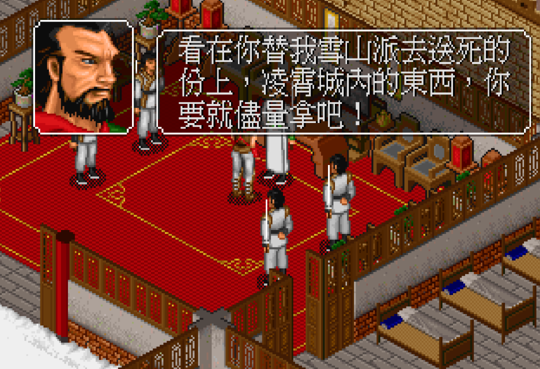 另外,嵩山派召开五岳大会之后,在内堂中有一个隐藏的宝箱,其中装着关键的主线道具:张旭率意贴。这玩意是梅庄场景需要用到的。