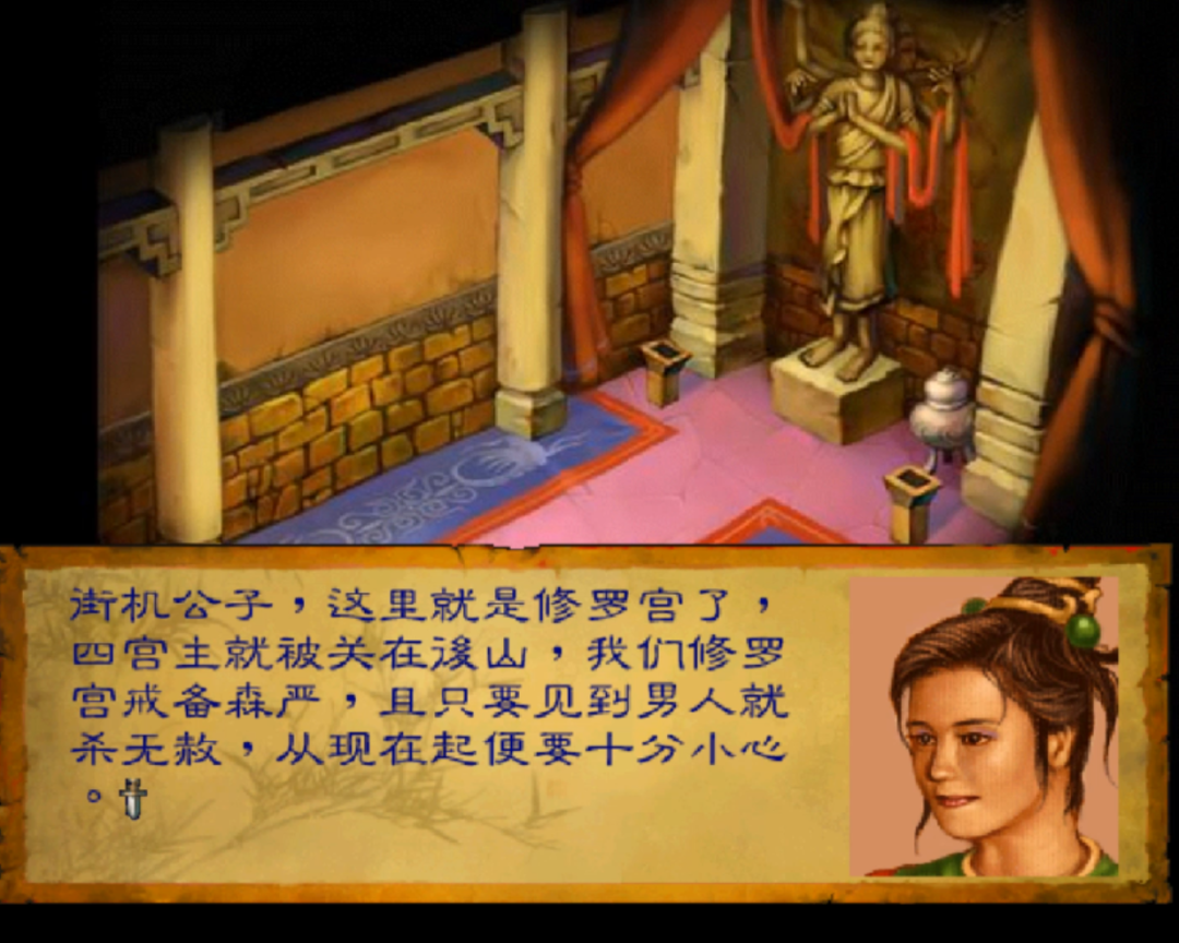 进入修罗宫之后,遇到了另一个婢女枫。她责备岚儿带回来一个男人。
