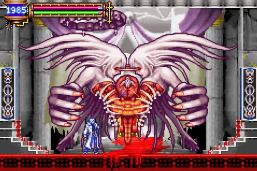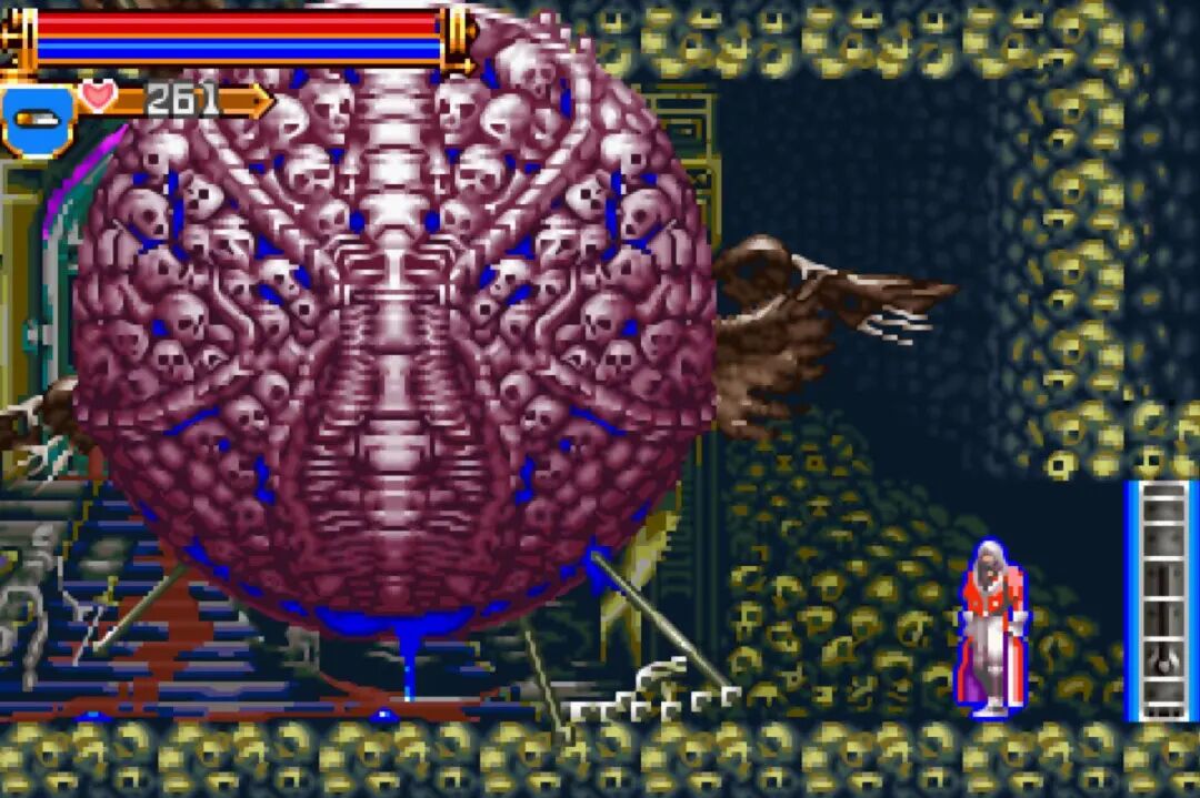 当然了,游戏中最难缠的BOSS还得是最终BOSS德古拉,不,应该是真祖德古拉。这款游戏中的BOSS居然发生了融合,死神和德古拉合并在一起了。