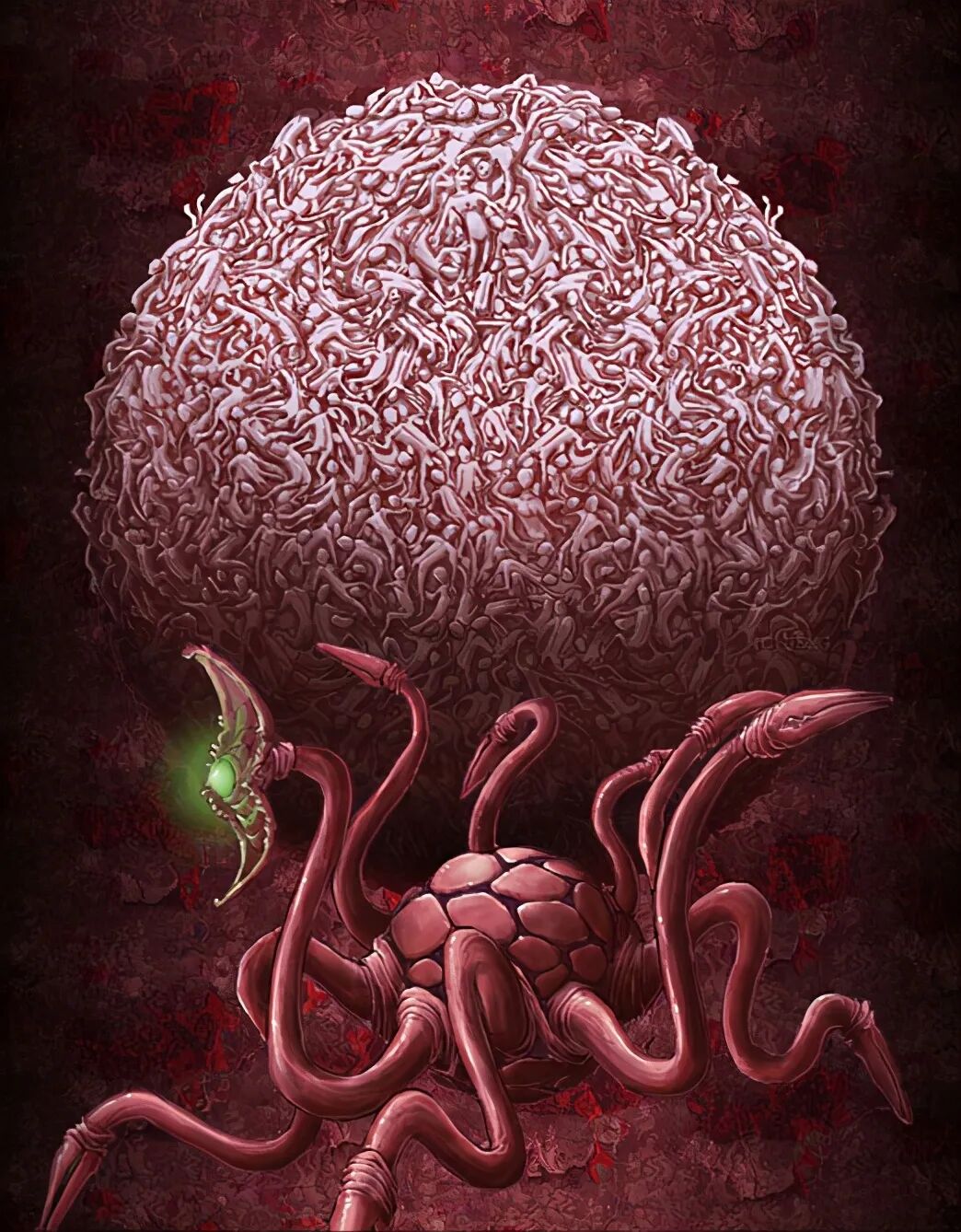 死亡军团(死人军团)是游戏中最细思极恐的BOSS,核心是一个不知道什么玩意的东西,每一代都是不同的,它会将附近所有的人类全都收集在一起,组成一个巨型的球体来保护自己。