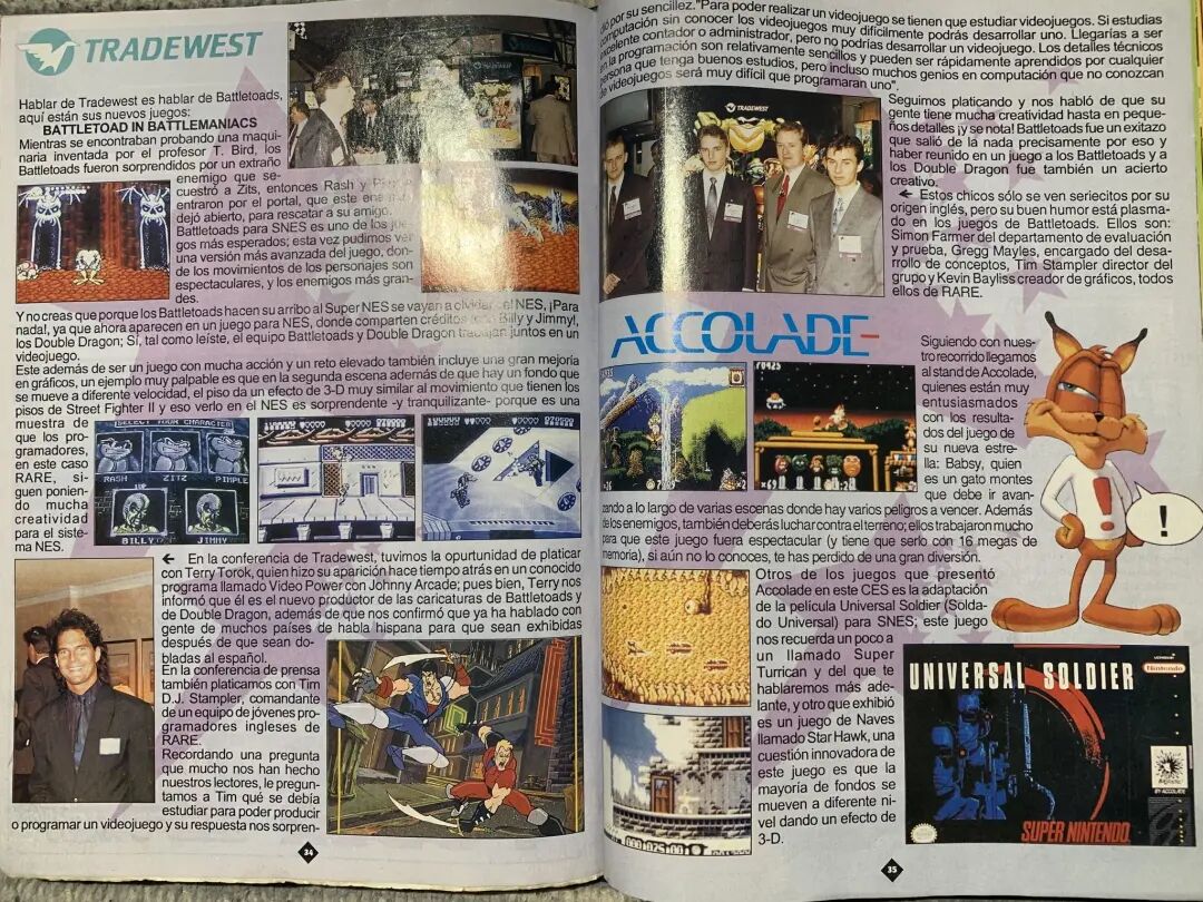 另一边,当年知名任天堂游戏杂志《Club Nintendo》上,曾经刊登了一篇关于1993年国际冬季电子展的文章,文章中展示了几家游戏公司正在开发的游戏。其中就有《忍者蛙与双截龙》的演示画面