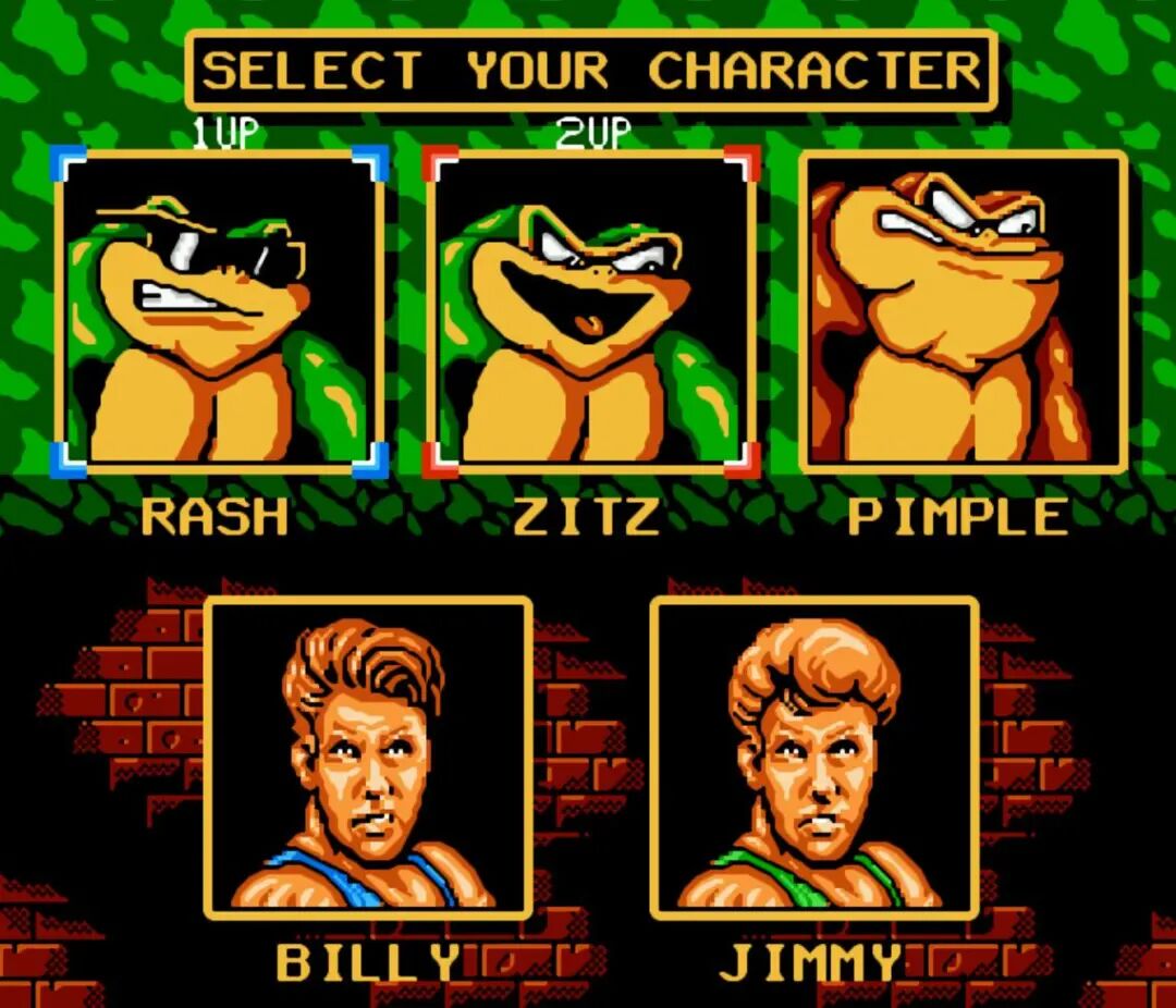 三只青蛙虽然也有细微的变化,但是区别不是很大。但双截龙兄弟的形象就完全被颠覆了,融入了忍者蛙的怪诞画风,变成了两个奇形怪状的怪物,就像是外星人。当年游戏要是就这么发行的话,不知道会不会受到玩家们的抵制呢?