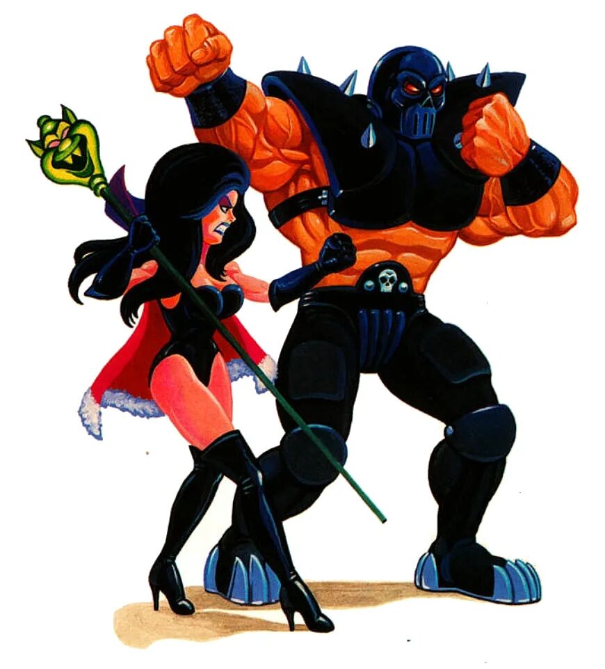 肌肉发达的战士,身穿深蓝色盔甲,身穿尖刺肩垫和深蓝色骷髅面具。他被视为黑武士的领袖,与黑暗女王联手称霸世界。