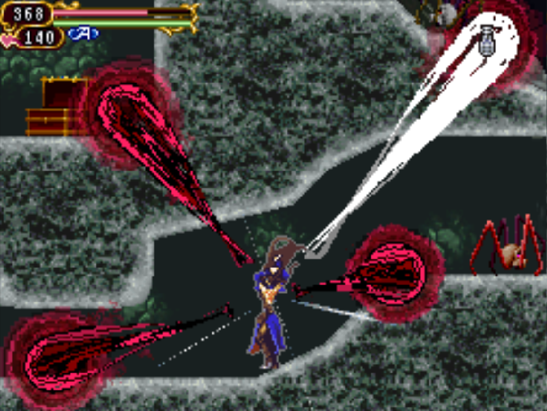 刻印的组合配合各种指环,就算是强大的德古拉也只能被秒杀。也正是这个原因,夏诺雅成为《恶魔城》系列中最强大的吸血鬼猎人。