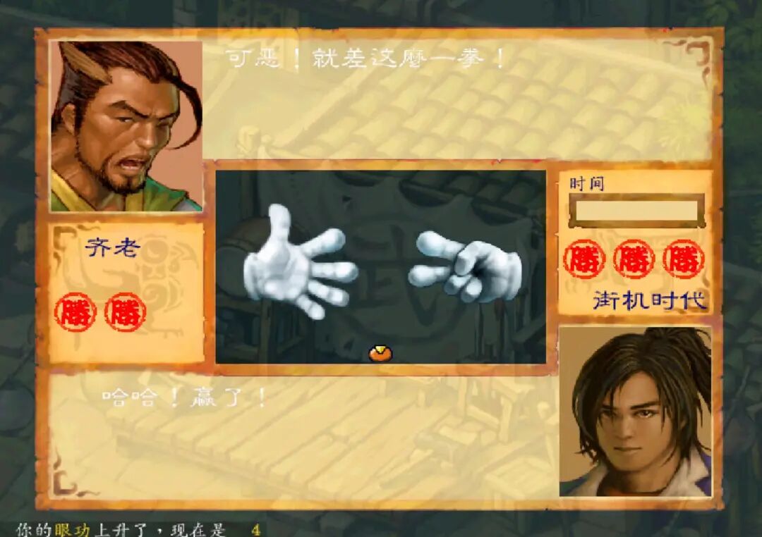 野球拳,到了《武林群侠传》中变成了“剪刀石头布”,让人忍俊不禁。但是仔细想想,在现实中野球拳不就是这么玩的吗?输了的人还要脱衣服。