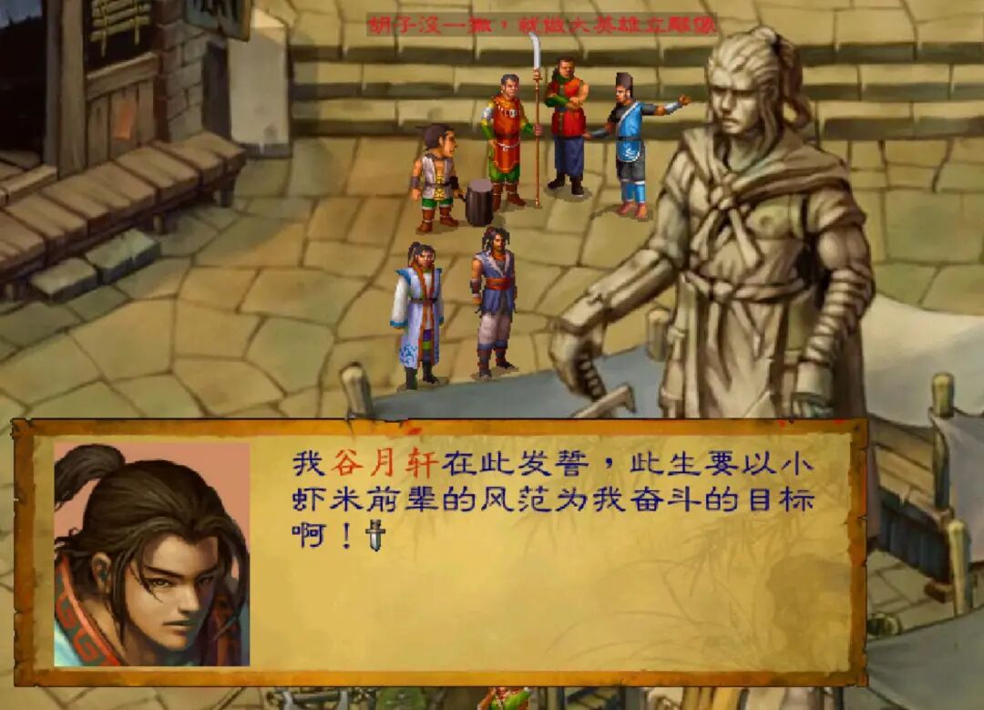 主角第一次来到洛阳,就认识了谷月轩,两人一起在“小虾米”前辈面前发誓要成为武林新秀。游戏中最精妙的设定就是武林排行榜,并加入了徐子易这个江湖说书人,江湖气息非常浓厚。