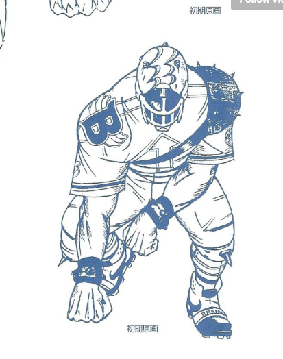 是不是感觉比较雷人?这个是官方提供的原稿哦!哈维·D!最初的发型居然这么潮,而看他们这个造型并非是运动员吧,倒像是水手。