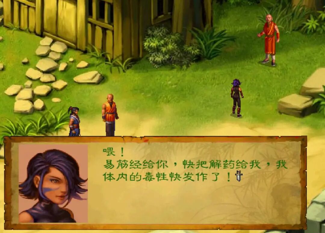 这之后试验被魔教之人威胁去少林寺拿《易筋经》。此时主角选择帮她脱身,并在这里成功拿到《易筋经》,在道德低于50的情况下,就可以将这本书据为己有,打死也不还给少林寺。