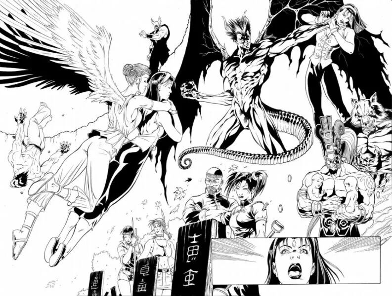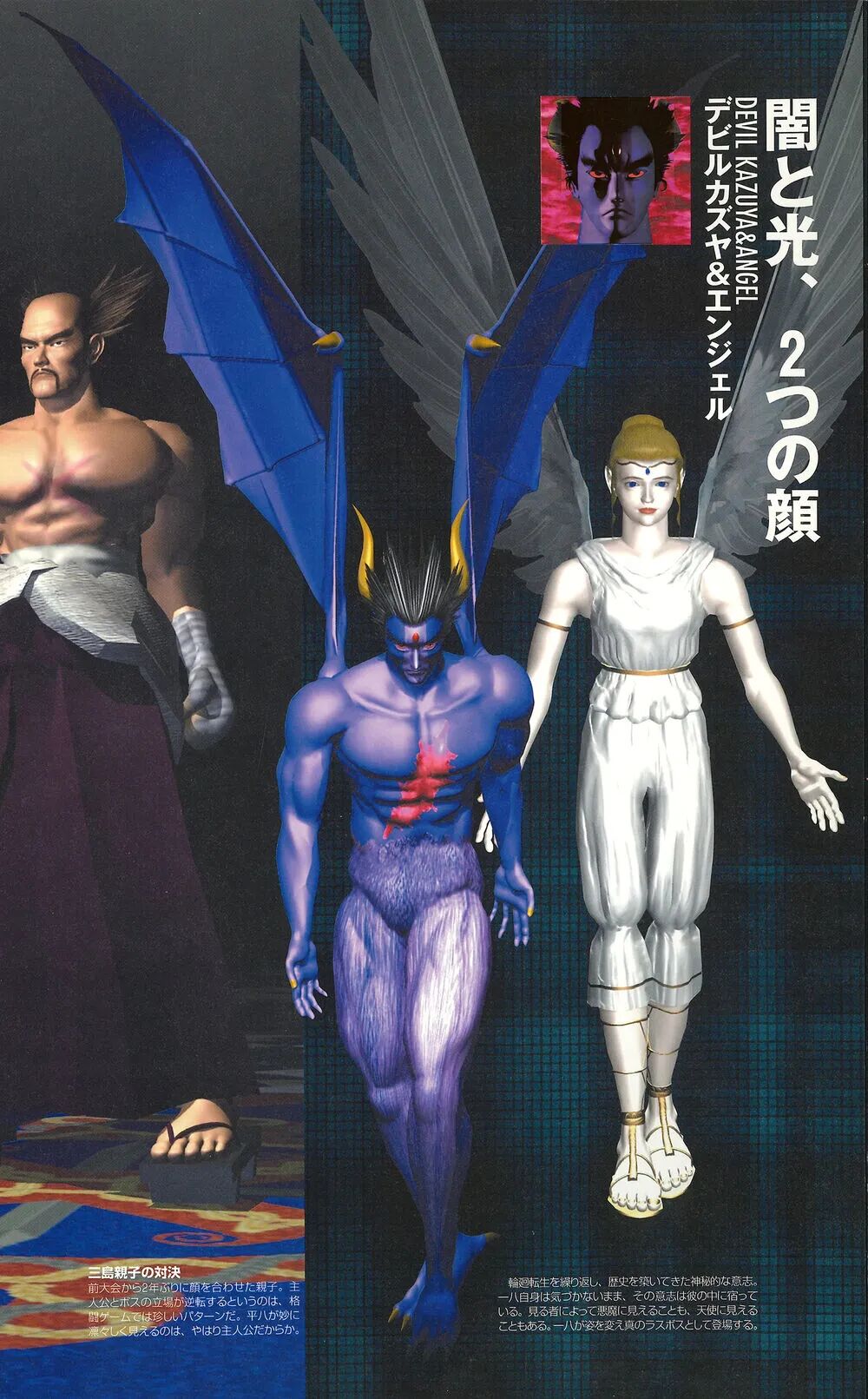 《铁拳TT》这边曾经出现过好几位人气角色,封面主推的人物除了天使之外,那就是恶魔化的风间准:Unknown。