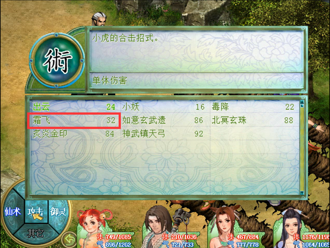 这里需要说明一下《仙剑奇侠传2》最初的版本中,合体技能是可以一直累积伤害的。也就是说可以在打小怪的时候不断使用合体技能,然后一直增加伤害,当我们见到BOSS的时候有可能已经拥有秒杀的能力了,即使是千叶孔璘这种大咖也是秒杀。