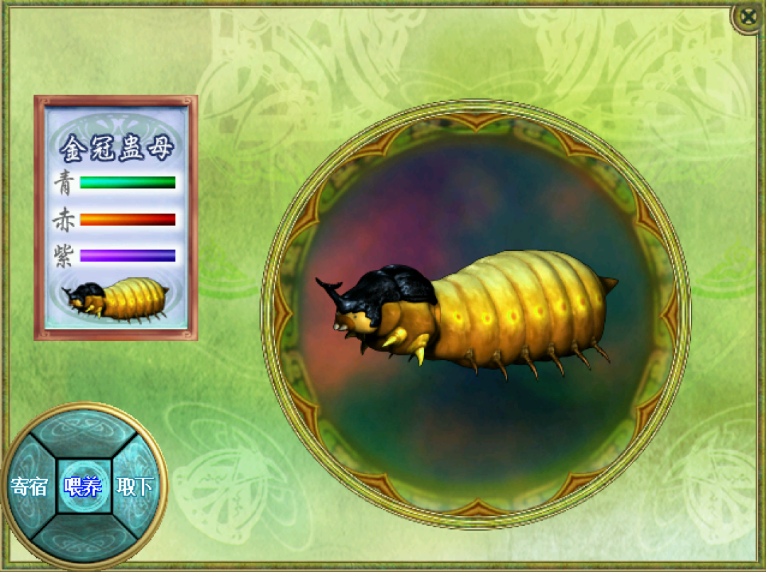 将三只蛊母好好照顾,没事就去药店逛逛,价格也不贵。然后找一些小怪物慢慢刷。蛊母生产道具,是和玩家战斗回合数有关的,因此找一些安全的小怪慢慢刷,过一会你会发现已经生产了很多金蚕王,以及一些加永久属性的道具。