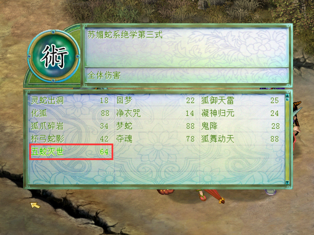 由于剧情太短,导致苏媚出场的次数非常少,玩家就算每次在她出场的时候都不停练级也没有什么作用。她的最终技能“五蛟灭世”必须通过算命先生的支线任务才能获取。