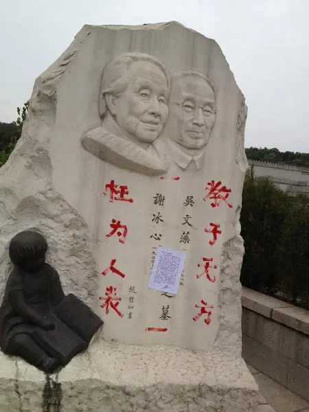 2012年5月31日,冰心的长孙吴山在奶奶爷爷的墓碑上,用红色油漆写下“教子无方 枉为人表”八个大字,并留下一封质问信。一时间,舆论开启了对吴山铺天盖地的批评和指责,北京陵园管理局也将吴山告上法庭。