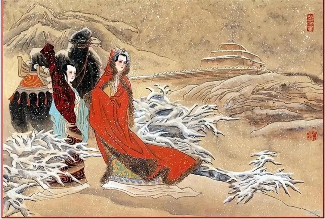 思及此,王昭君悲从中来,21岁的她主动提出要来和亲,一是不愿老死在深宫高墙里,二是家国情怀让她甘愿献身。